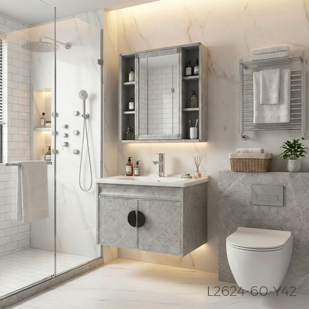 تصميم عصري فاخر: اللون الابيض يمنح الحمام لمسة من الفخامة والأناقة، مع مقاس يناسب المساحات الصغيرة والمتوسطة.