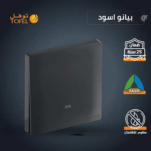 مفتاح سخان مربع 20 امبير لون اسود بيانو