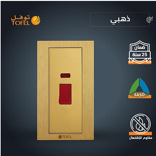 مفتاح مكيف مستطيل 45 امبير طقة حمراء لون ذهبي هادئ توفل