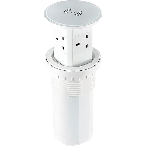 منفذ فيش غاطس مكتبي منبثق مع شاحن لاسلكي بـ 3 مقابس و USB A + Type-C ابيض توفل